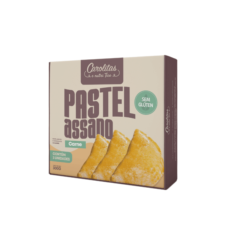 Pastel de carne sem glúten com 3 unidades de 100g na caixa Peso líquido: 300g ..